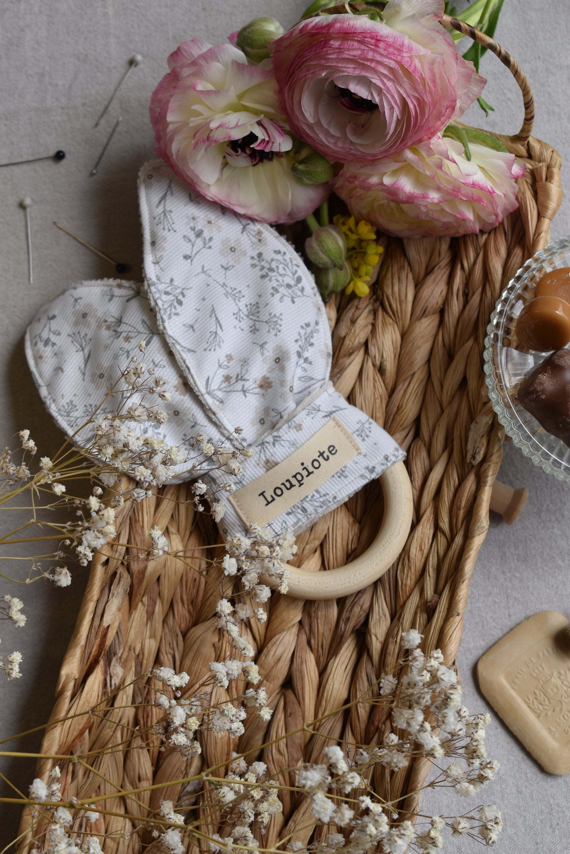 Soulagez naturellement les gencives de votre bébé avec cet anneau de dentition, alliant douceur et esthétisme. Fabriqué avec un anneau de bois « non traité », il est parfaitement adapté aux tout-petits, sans risques pour leur santé. L’anneau est accompagné d’un tissu tout doux, assorti à un joli motif fleuri apportant la touche personnelle de Loupiote !