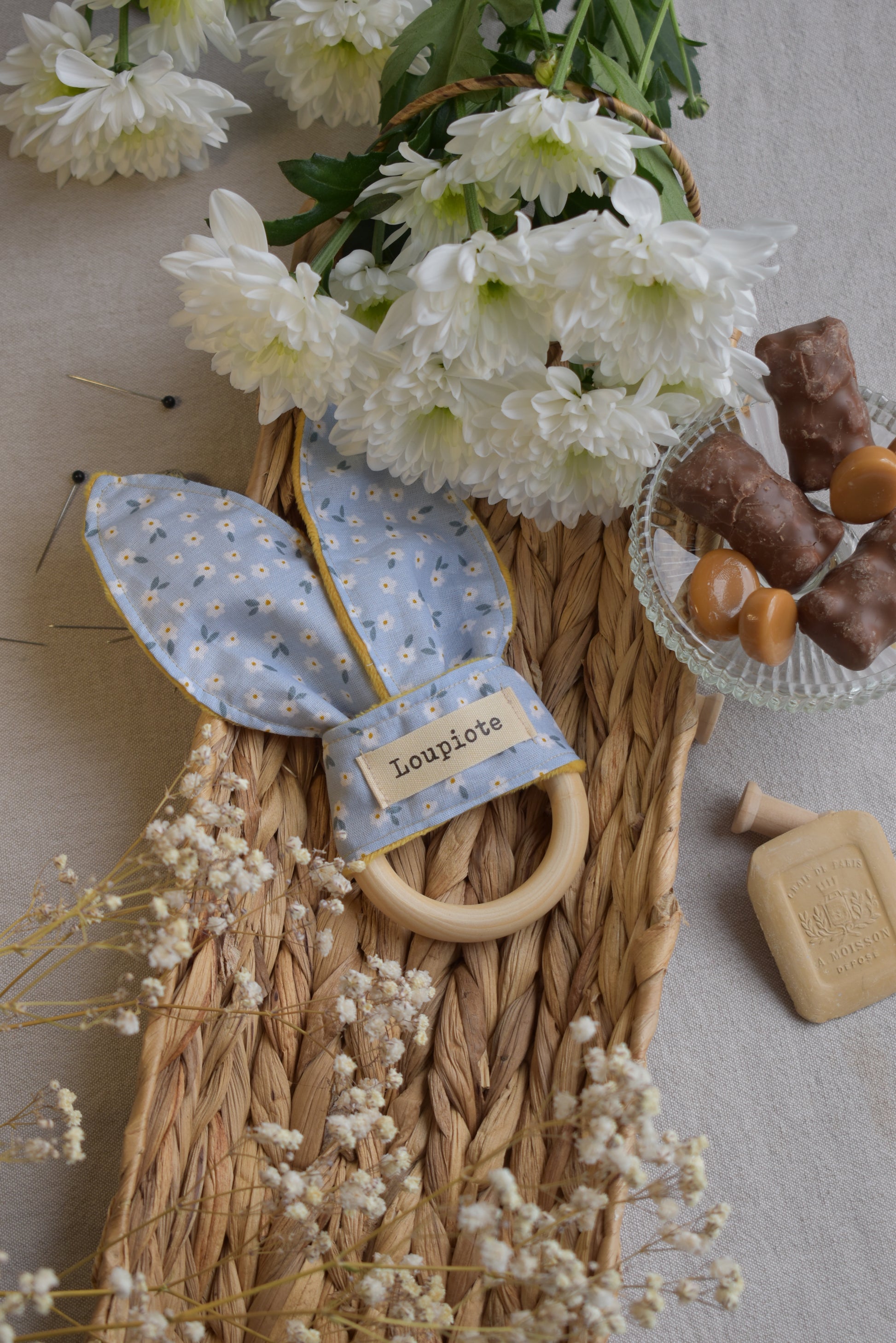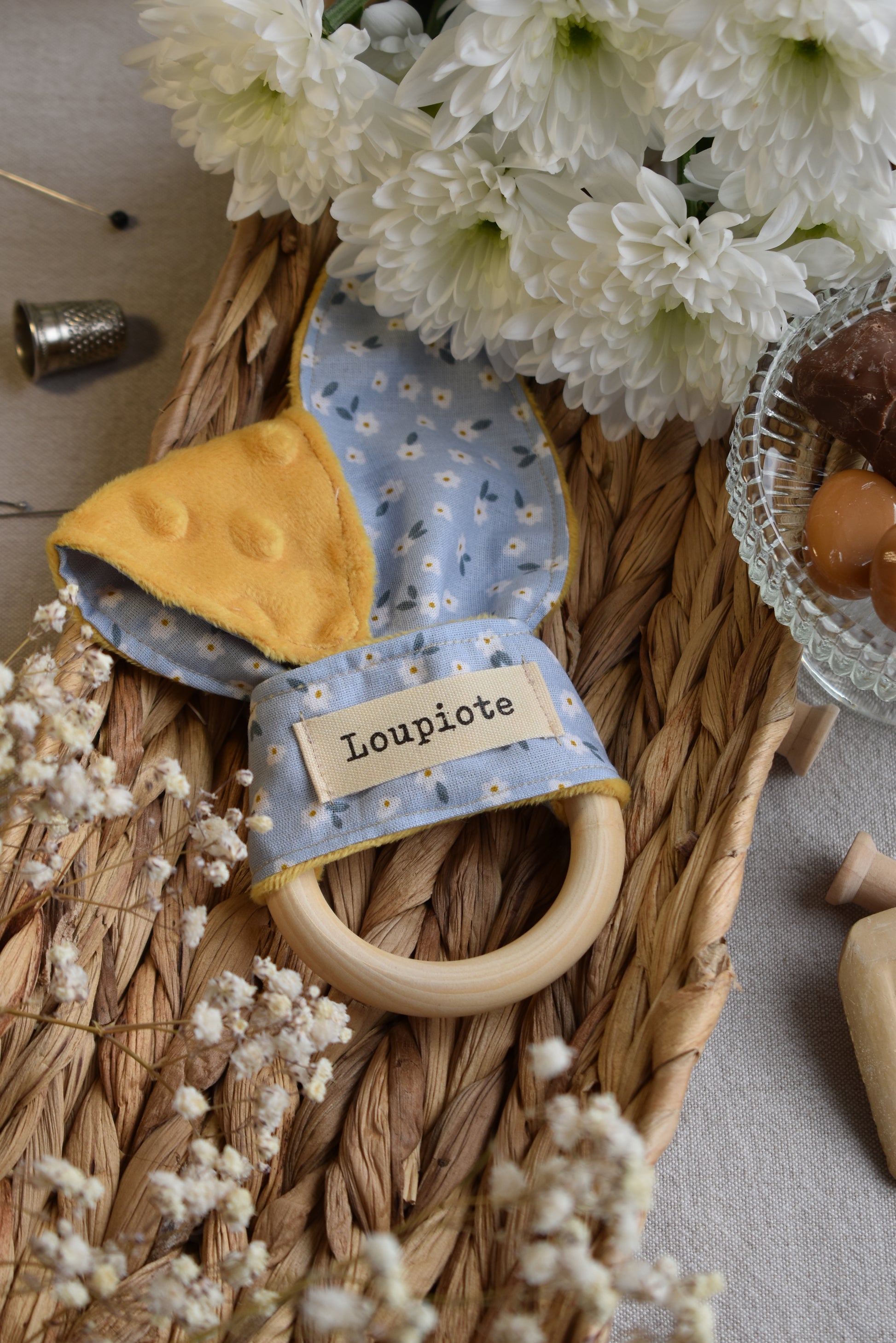 Soulagez naturellement les gencives de votre bébé avec cet anneau de dentition, alliant douceur et esthétisme. Fabriqué avec un anneau de bois « non traité », il est parfaitement adapté aux tout-petits, sans risques pour leur santé. L’anneau est accompagné d’un tissu tout doux, assorti à un joli motif fleuri apportant la touche personnelle de Loupiote !