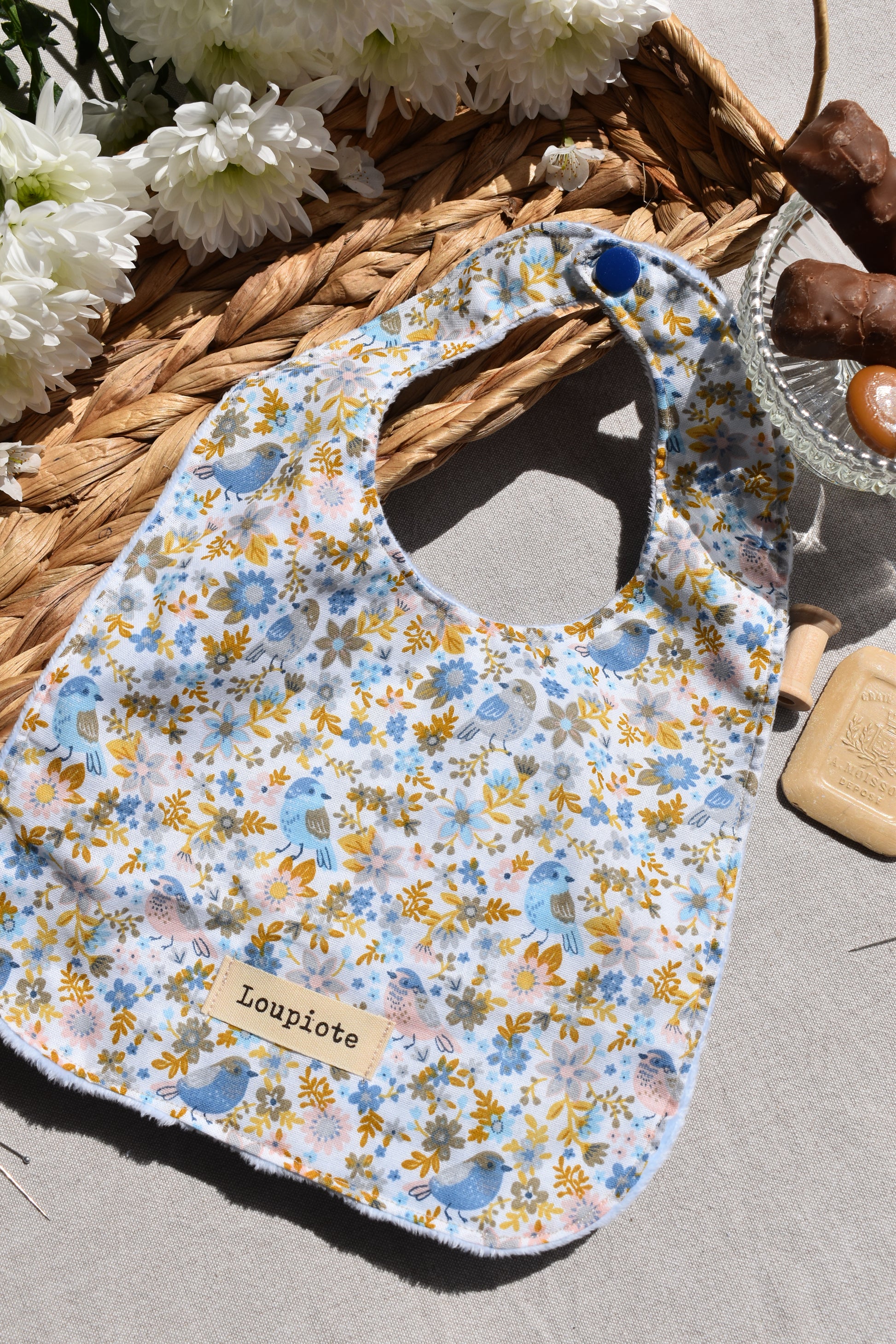 Ce bavoir est confectionné avec un tissu tout doux, délicatement assorti à un tissu fleuri. Pensé avec soin pour les tout premiers jours de votre bébé, il a été conçu pour l’accompagner longtemps, grandir avec lui et rester un essentiel du quotidien en alliant confort, praticité et esthétisme.
